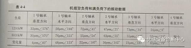 表4-4給出了大、小負荷兩種工況下的振動數(shù)據(jù)。從表中可以看出: